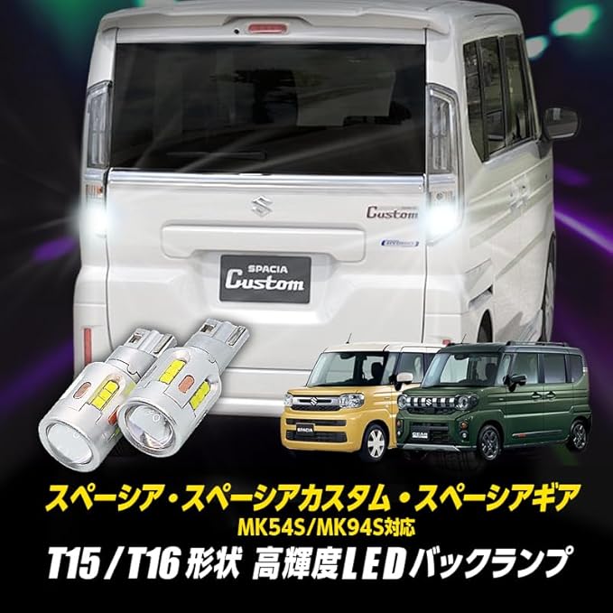 エンラージ商事 スペーシア・カスタム・ギア MK94S/MK54S 対応 T15/T16 Led バックランプ2個セット 3000ルーメン 無極性