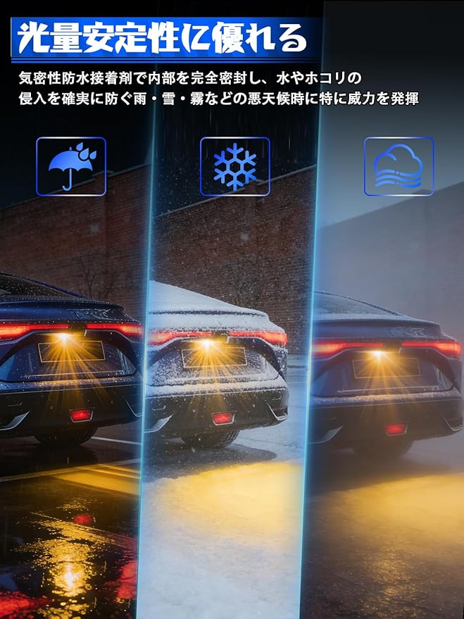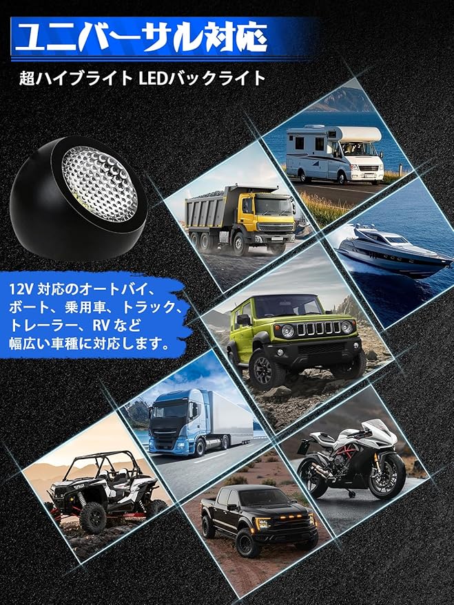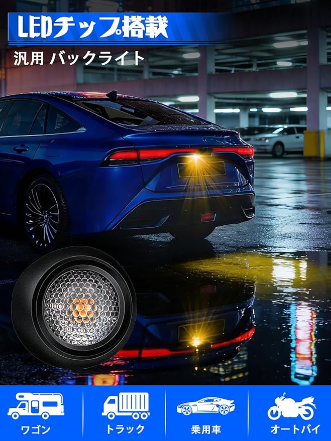 【超高輝度】LED リバースライトは照射範囲が広く輝度に優れ、車両後方と地面を十分に照らし出し。バックカメラの夜間視認効果を大幅に向上させ、後退時の視界を確保します。
