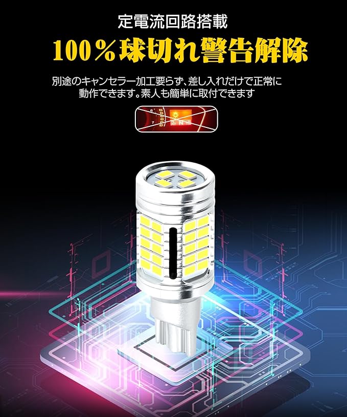 ■取付簡単:差し入れだけ、抵抗加工不要、極性確認不要の超簡単交換。 ■1年保証:LED化を初めてのお客様にも安心していただけるよう、ご購入日から1年間に理由なく不点灯する場合など、「48時間以内の全額返金や全新品交換」を約束いたします。工場では、全ての商品に20min連続点灯テストを実施しながら発送しおりますが、万が一初期不良等における不具合は、ご連絡を頂けると24時間以内に優しく対応致します。