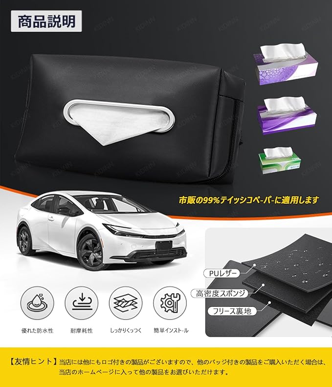車用ティッシュケース アルファード 40系/30系/20系 全シリーズ用 ティッシュホルダー レザー材質 防水 簡単な片手操作 専用ロゴ 取り付け簡単 車内の品位を高める(アルファード専用)