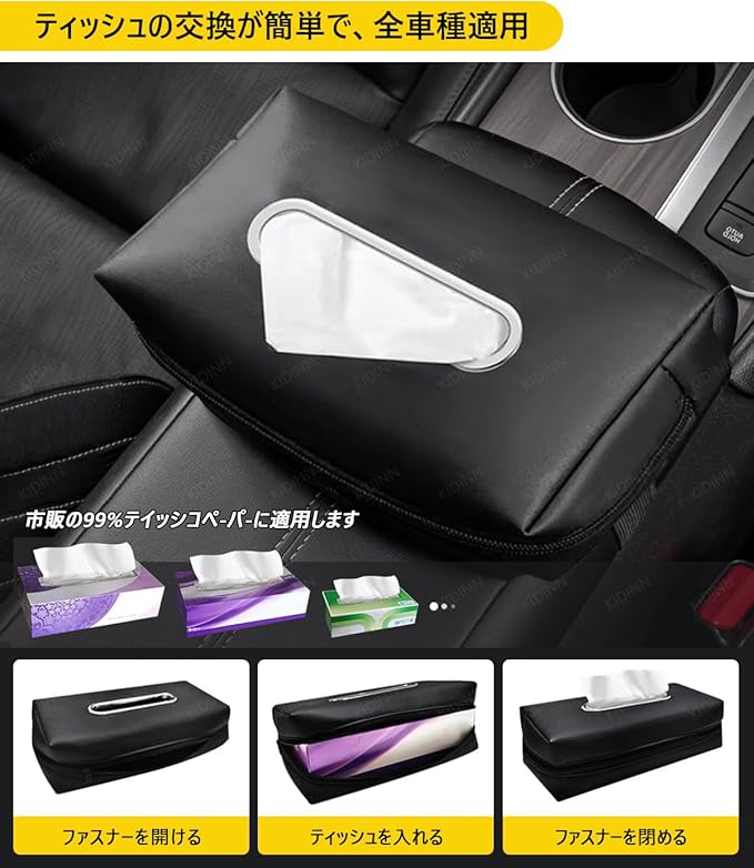 【全てのティッシュに対応】:市場調査に基づき、市販の99%のティッシュパックに対応できるよう設計されています。ティッシュの交換時にサイズを気にすることなく、簡単に異なるニーズを満たすことができます。ティッシュボックスのサイズは、見た目にも実用的にも最適に設計されています。使用時は手間をかけずにコンソールに置くだけで、非常に便利に使えます。