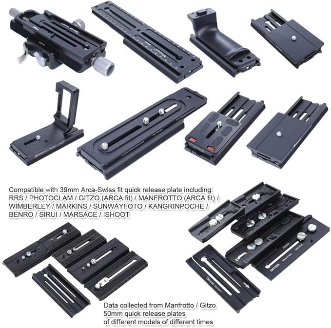 3.テスト後、39mm(38mmを含む)未満のRRS / Arca-Swiss標準クイックリリースプレートと互換性があり、Manfrotto、Gitzo、および他のブランドの流体ヘッド、ギアヘッド、3次元(3D)ヘッドに使用するように変換されました、または50mmクイックリリースプレートを使用したボールヘッド。