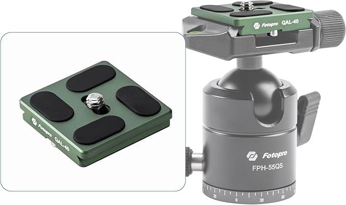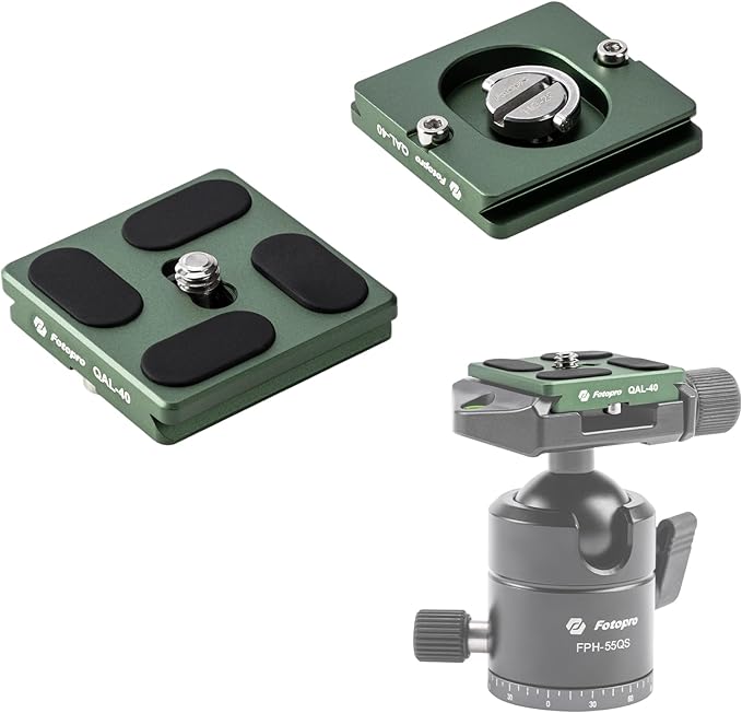 Fotopro 40mm ユニバーサル Arca-Swiss クイックリリースプレート イージータイト プロフェッショナルボールヘッド三脚用 クイックリムーバブルプレート デジタル一眼レフカメラ&ヘビーレンズ用 滑り止めQRプレート QAL-40 (グリーン)