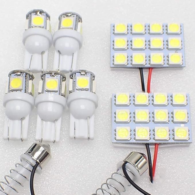 ★商品内容 ・フロントルームランプ 1個 ・リアランプ 1個 ・ラゲッジランプ 1個 ・LEDバルブ 4個 (LEDバルブはポジション・ナンバーランプ及び予備等にお使い頂けます。) 計:7点のセットになります。