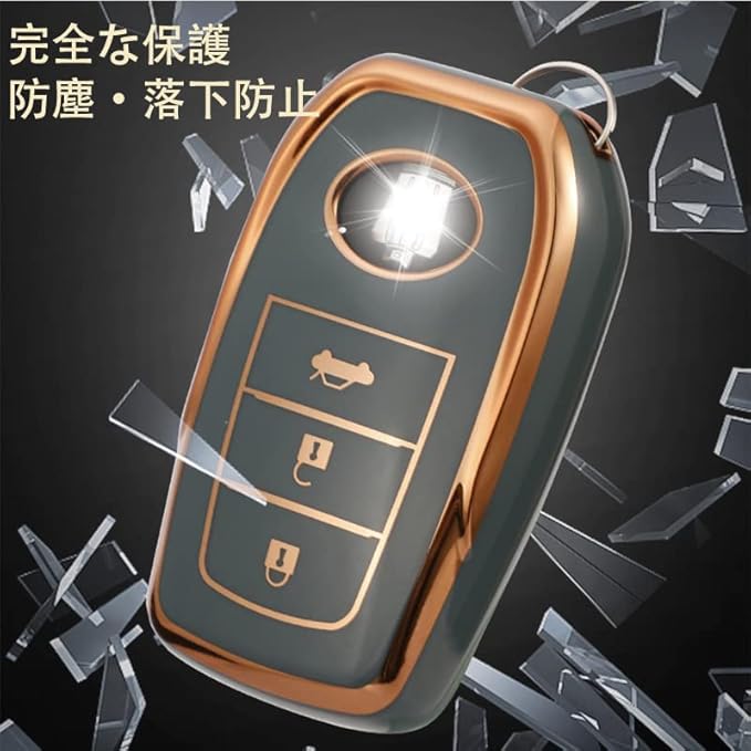 【高品質素材】:軽量で光沢のあるしなやかなTPU素材で、高品質の電気メッキの光沢が高級感を演出します。 TOYOTAキーケース互換性に設計されており、摩擦に強く、壊れにくく、軽くて丈夫で、TOYOTAの車のキーに傷や摩耗を防ぎ、完全に保護されています。