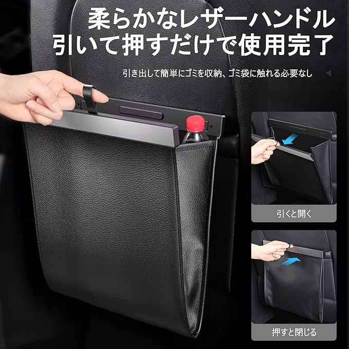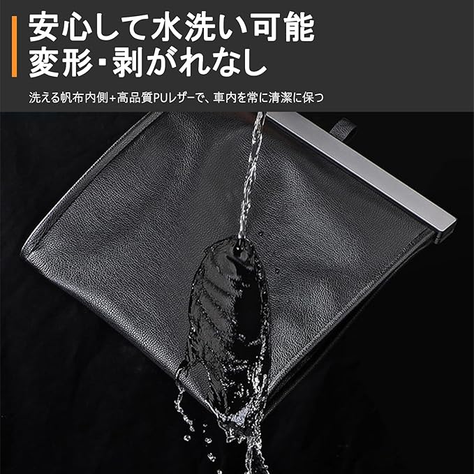 車 ゴミ箱 折り畳み式 多機能車両ボックス 多車種対応フック 便利グッズ 吊り下げ 車用ゴミ箱 カー用品 車の使用 スリム マグネット式 PUレザー 防水 倒れない 省スペース 小物入れ 収納(ブラック)