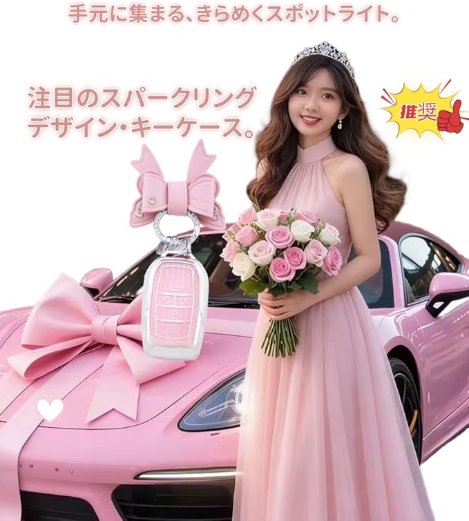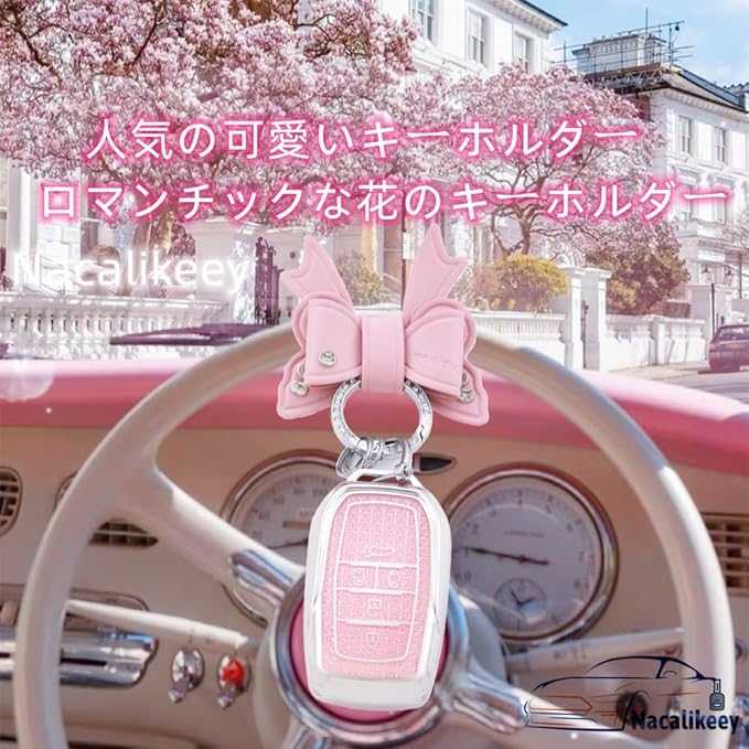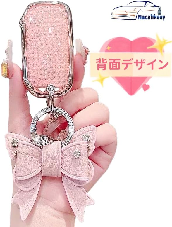 【Nacalikeey】可愛の蝶々デザインキーケースス適合新型 ヴォクシー ノア 90 系キーケース適合NOAH VOXY アルファードキーホルダー きらめきキーケースト適合シエンタ 15系 10系 SIENTA 15 10 系きらめき キーカバー華やかなスタイルわいいキーケース (5ボタン,ピンク)