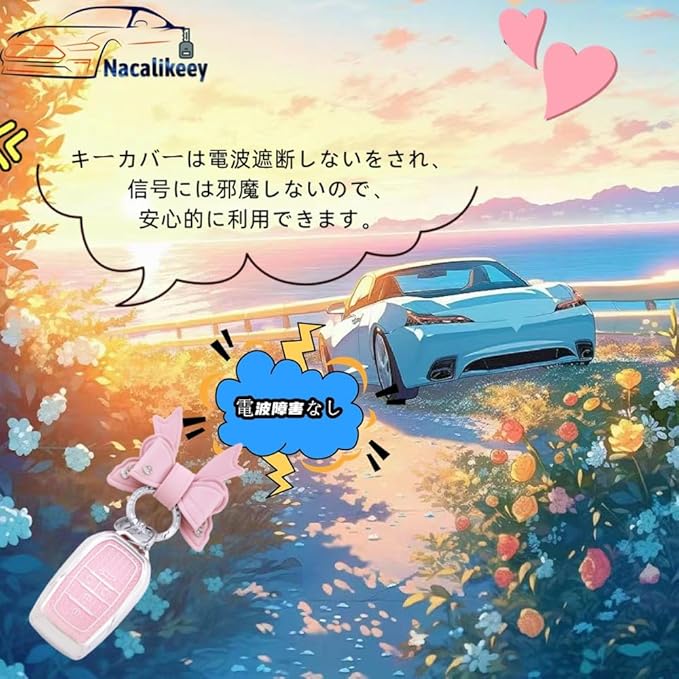 【遮断しない】キーカバーは電波遮断しないをされ、信号には邪魔しないので、安心的に利用できます。花の形、おしゃれでかわいい!