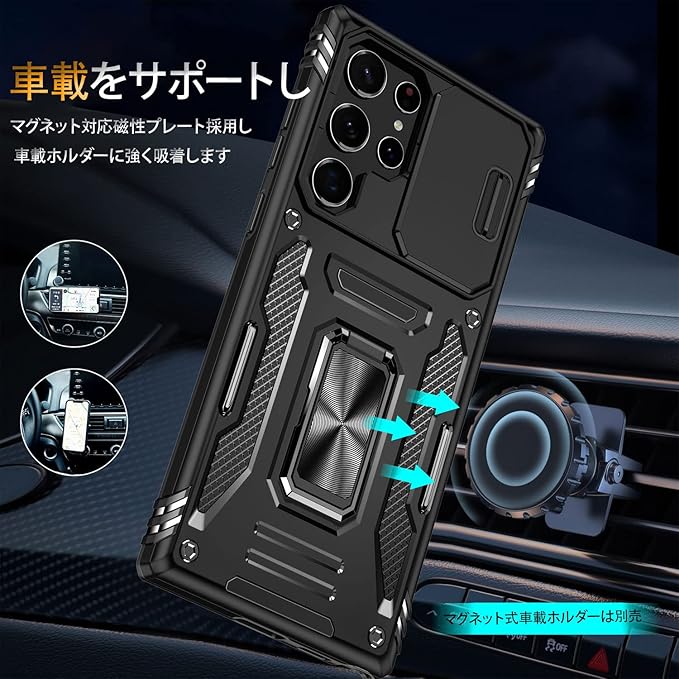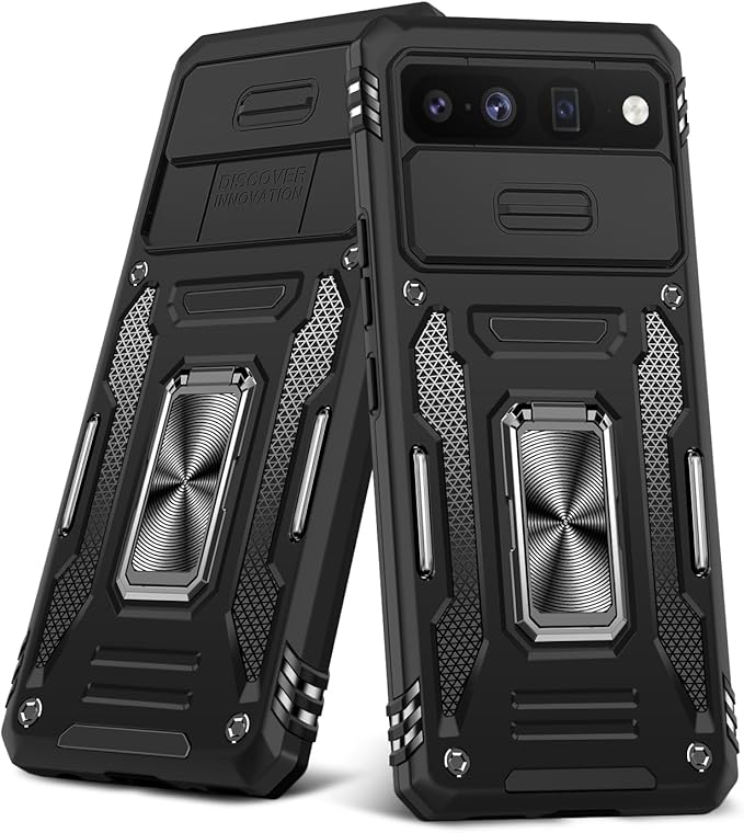 ケース 対応 Pixel7 Pro 用のケース リング付き スライド式カメラカバー 耐衝撃 スタンド機能 車載ホルダー レンズ保護 対応 グーグル ピクセル7 Pro 用のスマホカバー PC TPUバンパー 防塵 人気 落下防止 滑り止め 指紋防止 黒 K27