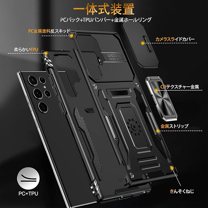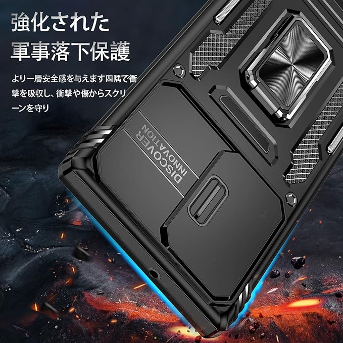 【機種対応】対応 Pixel 7 Pro 用のデザインです、他の機器と互換性がない。【二重構造】PC(ポリカーボネート)バック+TPU(シリコン)バンパー+金属ホールリング、内側TPU素材とハードPCフレームで制作するため、耐久性に優れた、外部からの衝撃を内部に吸収されて、側に滑り止めの設計で、落下を防止にできます。全カバー式の音量ボタン&スイッチボタンの設計は、ぴったり合うだけではなく、操作しやすいよう最も適したサイズに作られています。【スライド式カメラカバー】スライドカバーはより滑らかに開閉できるようになりました。カメラレンズもスライド式カバーで砂・埃などの侵入を防ぎます。ケースのエッジは液晶画面より高さの設計で、液晶画面を保護することができます。【スタンド機能】スタンドの機能はスマホを横に放置できて、長時間の動画視聴でも手に持つ必要がなく、超らくらく動画視聴が可能です!長時間での新幹線、飛行機の中での暇つぶしに最適ですよね。携帯ケースと指リングは一体型な設計で複雑な取り付けがなく、落下しにくく、擦り傷、ぶつかり合う、落下からスマートフォンを保護することができ、手に持って持ち運ぶことも安全&便利です。車載の磁気吸盤にしっかりと吸着することができ、運転中に携帯電話のナビゲーションなどの機能をより便利に使用することができます。(ご注意:ケースの背面は金属製部分がありますので、ワイヤレスチャージャーを使うことときにカバーケースを取り外してください。USB lightning ケーブルで充電するならOKです。)【カラーバリエーション】豊富なマルチカラーラインナップ!シンプルなベーシックカラーからポップなアクセントカラーまで、あらゆるスタイルとシーンに合わせてお選びいただけます。日常の気分やお好みに合わせて、自由にコーディネートできる楽しさをご提供します。