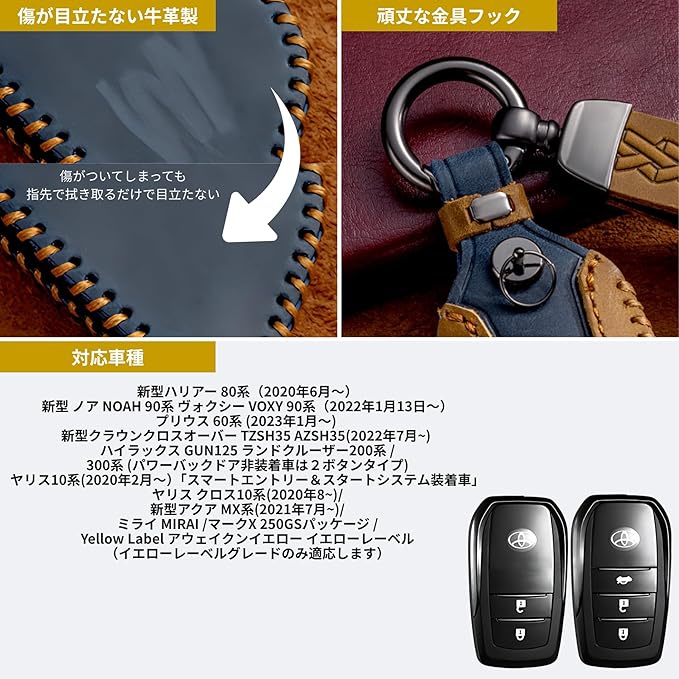 キーケース 牛革 メンズ スマートキーケース トヨタ 新型ハリアー 新型ノア ヴォクシー 新型プリウス ハイラックス ランドクルーザー ヤリス ヤリスクロス