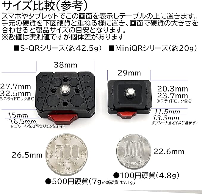 内容物:ベースx1(1/4ネジ含む)、プレートx1(1/4ネジ含む)、1/4ネジ締め用L型レンチx2
