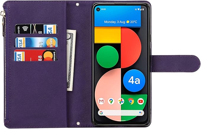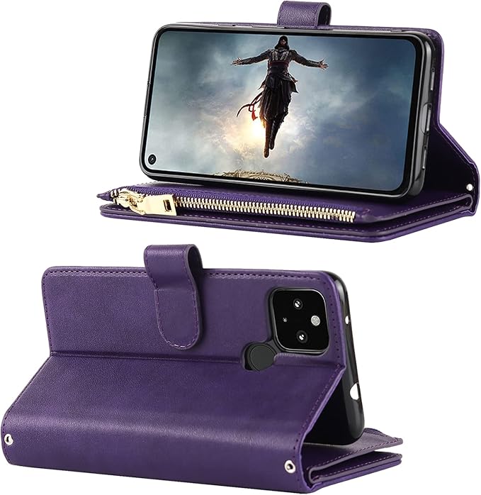 for Google Pixel 4A 5G ケース for google pixel4a 5g 縄掛けケース 手帳型 財布型 ICカード コインポケット ストラップ付き カード 収納 小銭入れ ファスナーポケット付き PUレザー 6色パープル
