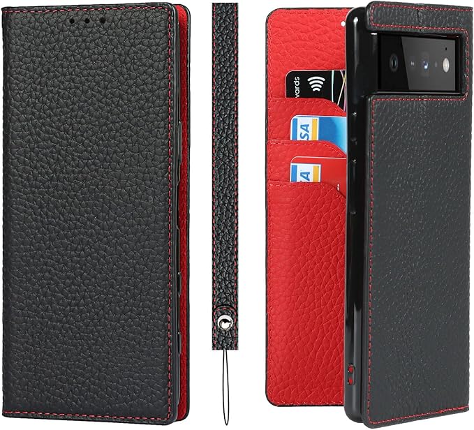 Pelanty for Google Pixel 6 Pro ケース手帳型 pixel6 pro スマホケース 牛革製品 本革レザー 財布型カバー カード収納 スタンド機能 内蔵マグネット 手作り柔らかい グーグル ピクセル6Pro 6.7'' 携帯カバー ストラップ付 ヘッドフォンケーブル 耐衝撃 ブラック