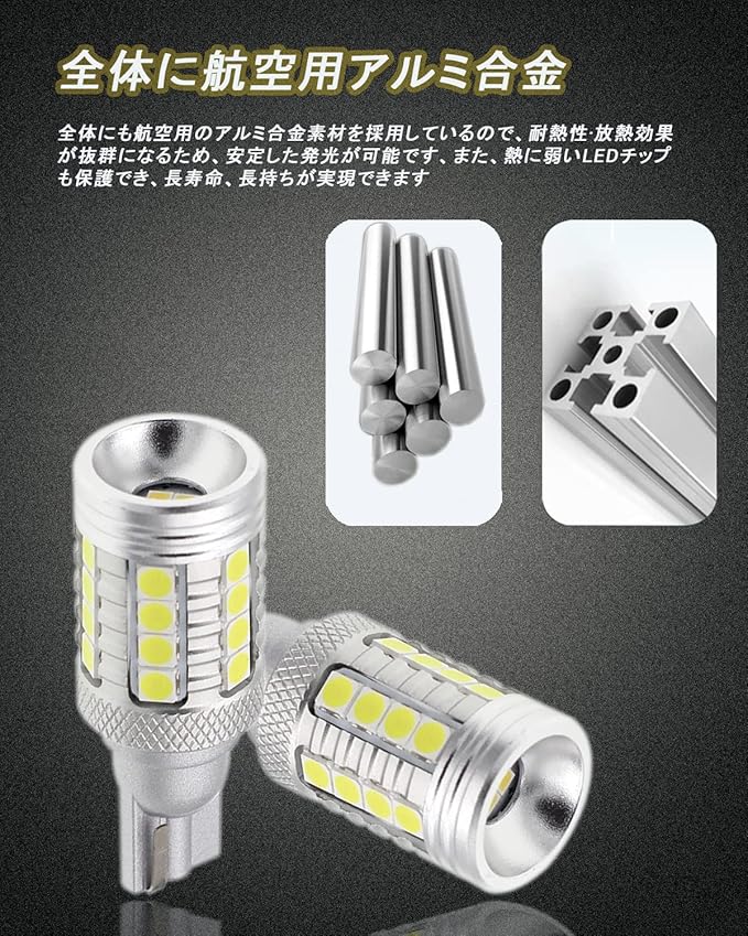 T16/T15 LED ホワイト バックランプ 爆光 キャンセラー内蔵 2000ルーメン 3030LED 24連+3020LED 2連 DC10V-24V 無極性 後退灯 バックライト 2個セット