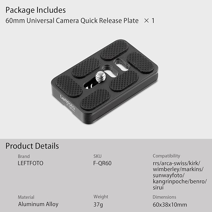 Leftfoto 60mm ユニバーサルカメラ クイックリリースプレート メタル 小型 QR 三脚カメラ ボディマウントプレート Arca Swiss 標準クランプ デジタル一眼レフカメラ三脚ボールヘッド用