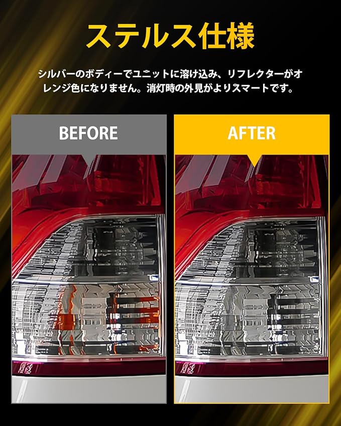 【ステルスのT16バックランプ】ランプ・ボディの色が統一されていないことにまだ悩んでいますか?このT16 ledはシルバーのボディーでユニットに溶け込み、リフレクターと同色で、見た目には違和感がありません。高透過率のランプシェードを採用、優れた拡散性を持つだけでなく、内部のLEDチップを破損から保護します。美観と安全性の両方を兼ね備えています。