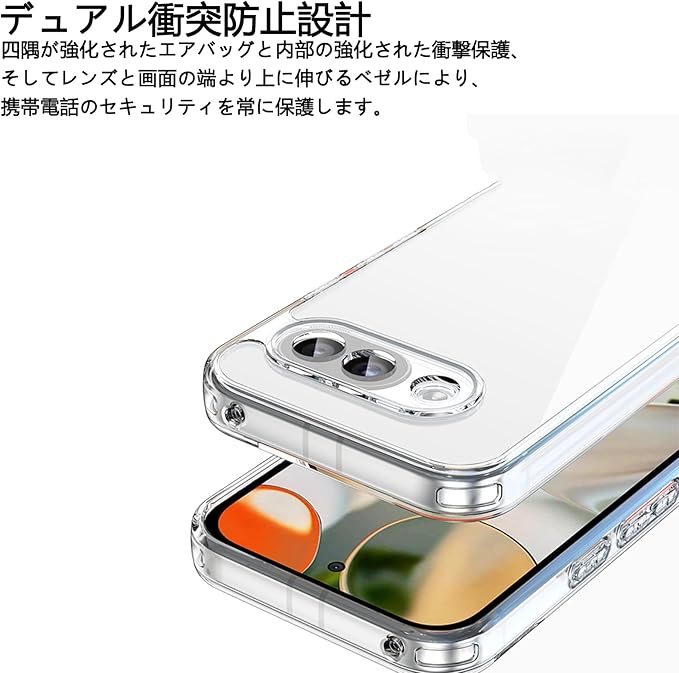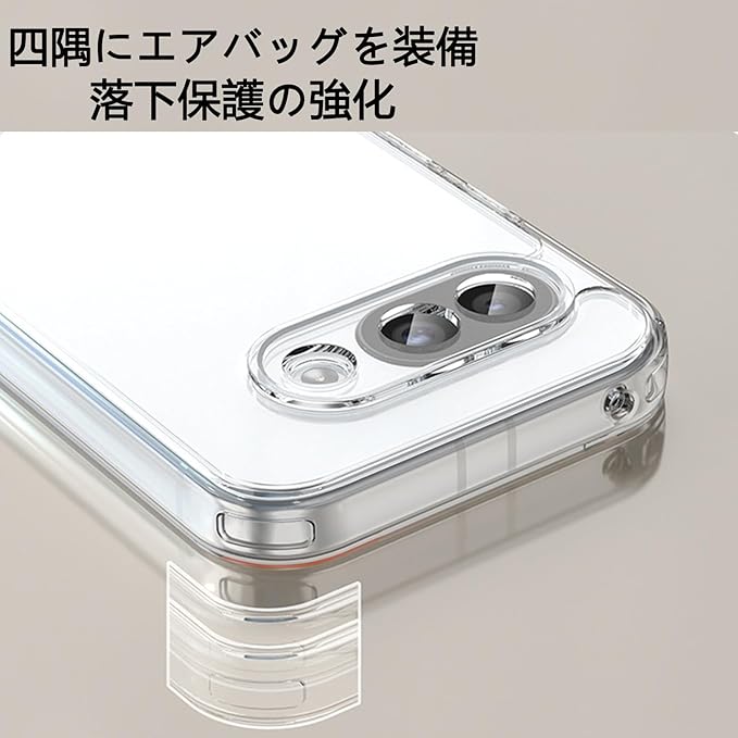 【包括的な保護】四隅にエアクッション構造を搭載し、落下や衝撃から本体を守ります。レンズと画面部分を 0.3mm 高く設計し、擦れや傷つきを防止。
