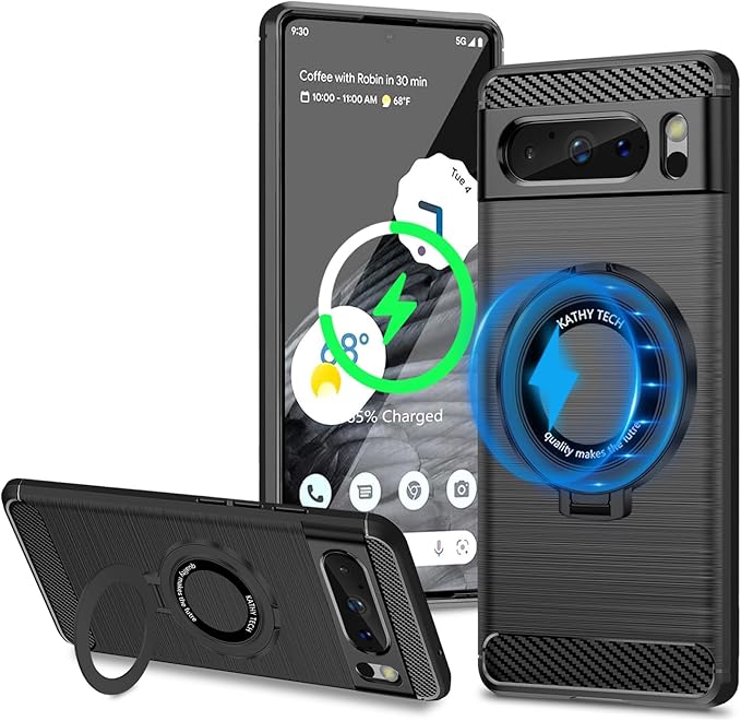 Google Pixel8 Pro ケース Magsafe対応 リング付き 隠しスタンド ピクセル 8 Pro カバー スタンド内蔵 縦横両対応 米軍MIL規格 耐衝撃 落下・すり傷防止 薄型 超軽量 黄変なしワイヤレス充電対応 車載ホルダー Pixel 8 Pro スマホケース 黒い