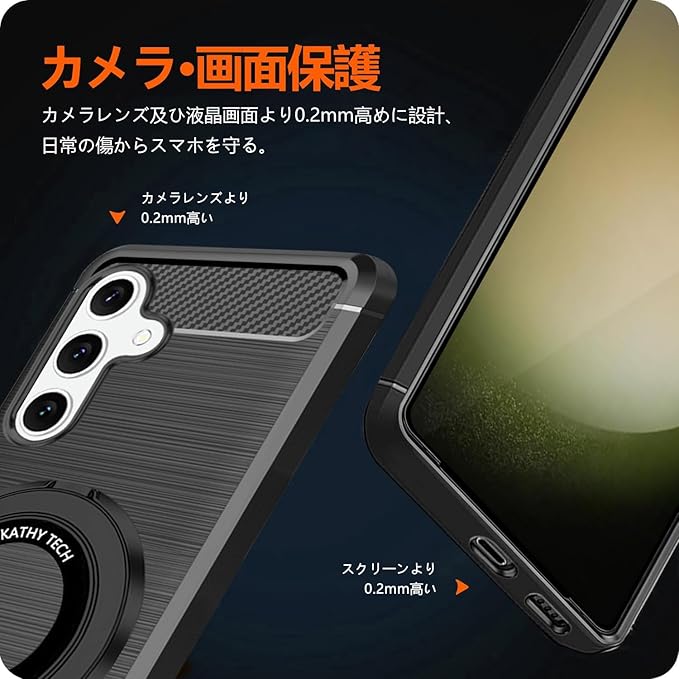 【耐衝撃保護】ハードPCバックカバーと柔軟なエッジは、14フィートからの落下の衝撃を吸収します。 また、ベゼルの角には落下防止エアクッションが内蔵されており、保護性能を大幅に向上させます。スマホの画面やカメラレンズの落下による損傷を保護するために、レンズやエッジよりも少し高いデザインを採用し、こんなの細部のデザインは安心感たっぷりのなっています。