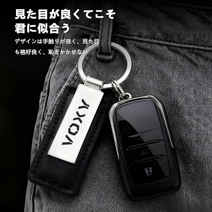 [InnoWave] ヴォクシー 専用 キーホルダー車 VOXY 本革レザー ヴォクシー 80系 90系 車のキーチェーン キーリング 車のキーホルダー 黒