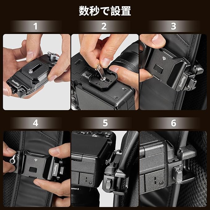 SmallRig カメラクリップ(プレート付き)クイックリリースシステム(Sony対応、Nikon対応、Fujifilm対応、DSLRアクションカメラ対応)、Arca-Swiss対応バックパックストラップクリップキット 5053
