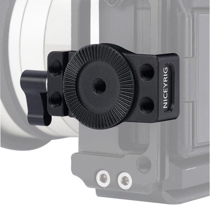 ARRI M6 スレッド ロゼット グリップ、オプションの Niceyrig ロゼットハンドル 424/149、Niceyrig 255/252 と互換性があります。 クランプ上部に複数の 1/4''-20 ネジ穴があり、ライト、マイクなどアクセサリを取付できます。