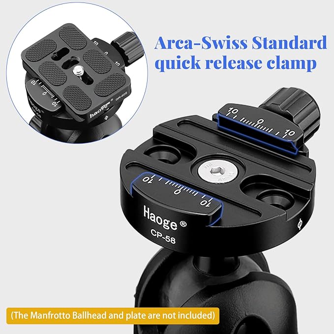 Haogeコンボボスアダプタwith cp-58 58 mm arca-スイス互換クイックリリースクランプ向けManfrotto三脚ボールヘッドクランプ交換用