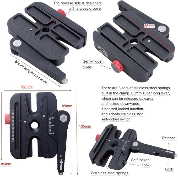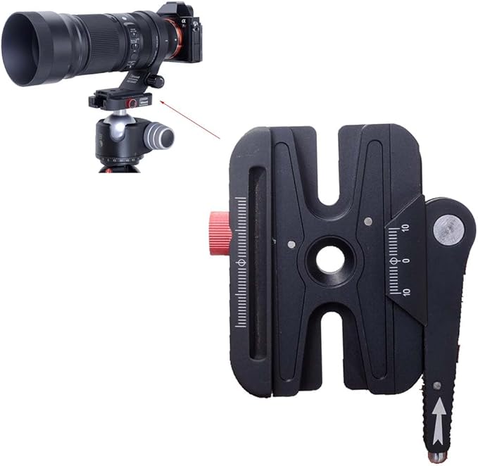 オールメタルクイックセルフロックレバークランプアダプターコンバーター、ノブ付き微調整、Manfrotto 200PL プレートおよびアルカスイスフィットArca-Swiss Fit カメラクイックリリースプレートおよび三脚ボールヘッドとの互換性