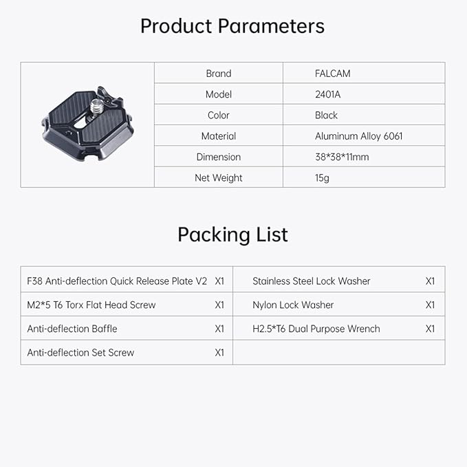 FALCAM F38 カメラ用アンチデフレクションクイックリリースプレート、Arca-swiss仕様ベースと互換性があり、ショルダーストラップに取り付け可能