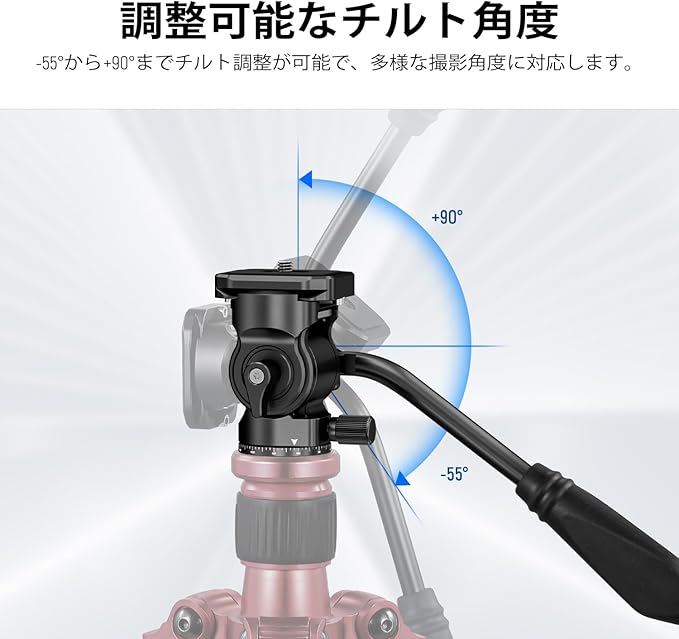 【360 パノラマ回転&-55 ~90 チルト】三脚と一脚用フルードヘッドは、スムーズな動きと固定された摩擦ダンピングを提供します。アルミ合金製チルトロックノブ、パンロックノブ、ハンドルアクセサリーを装備し、ヘッドを360 回転させたり、-55 ~90 チルト調整が可能で、多角度撮影やビデオ撮影に最適で、ポータブルな旅行用ビデオ三脚、頑丈な俯瞰撮影三脚、ミニ三脚、カーボン製ウェブカメラ用軽量三脚などにも最適です。