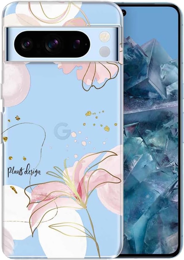 AnglersLife ソフトケース TPUケース Google Pixel 8 Pro クリアケース グーグルピクセル8プロ ケース 花柄 青い花 嬉しいニュース