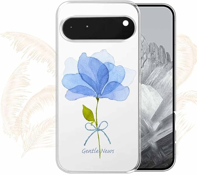 AnglersLife ソフトケース TPUケース Google Pixel 9 Pro クリアケース グーグル ピクセル9 Pro ケース 花柄 青い花 嬉しいニュース